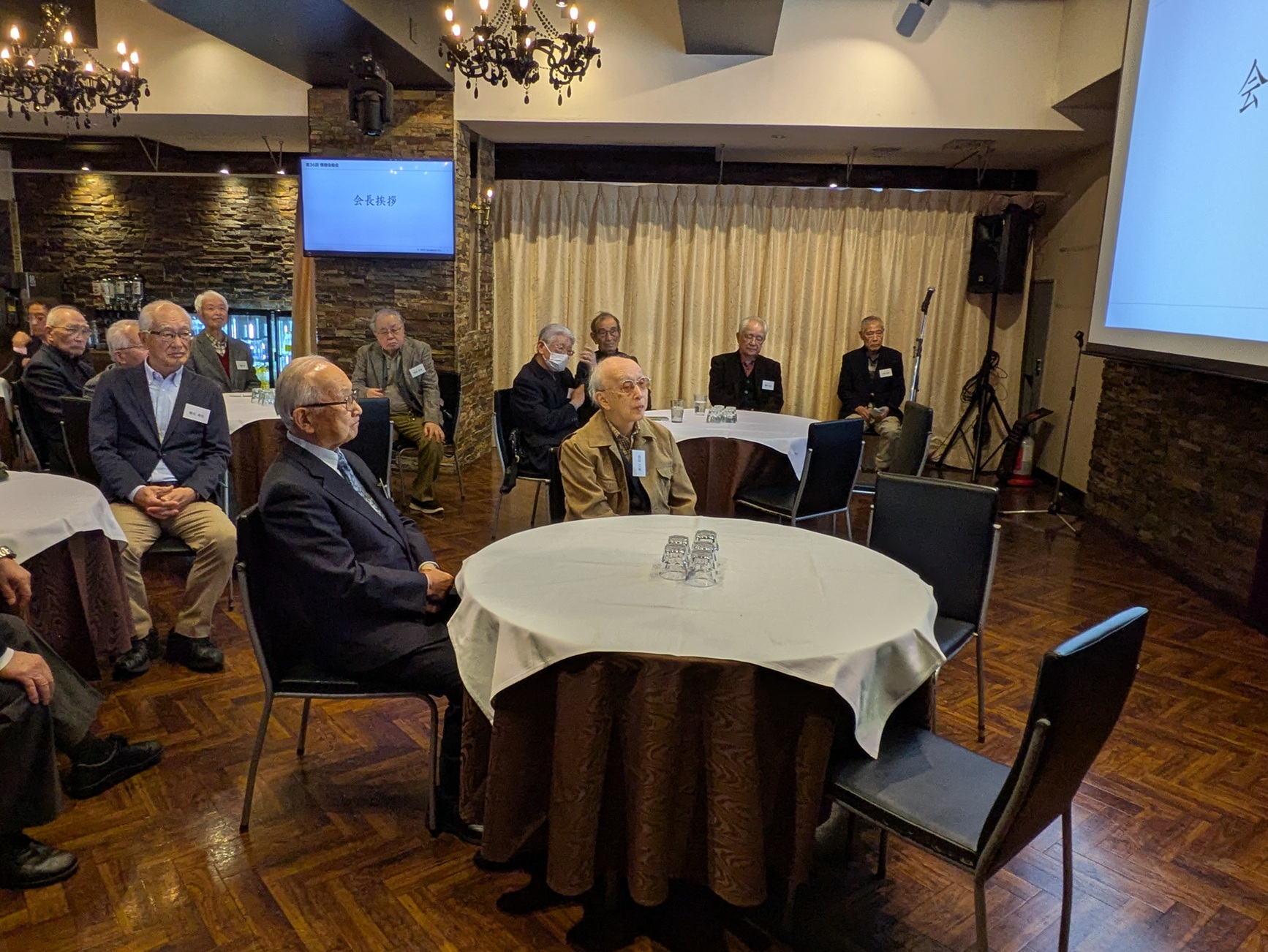 - 総会終了後には懇親会を開催、会員相互の親睦と現役の方々との懇親を深めることができ、和やかな雰囲気の中